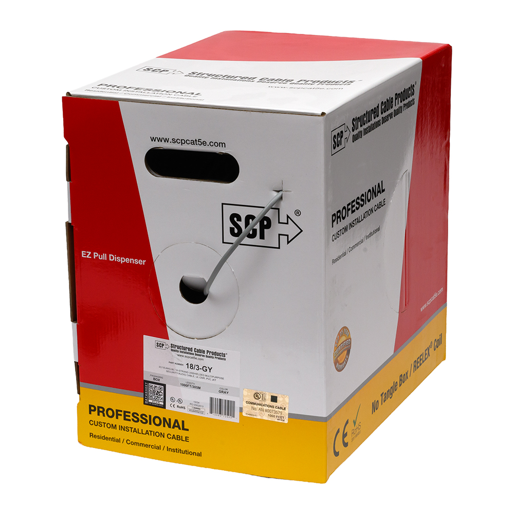 3C/18 AWG BC 16-Strand Unshielded Multipurpose Security/Audio Cable, UL CMR, PVC Jkt- Gray- 1000ft/305m Box