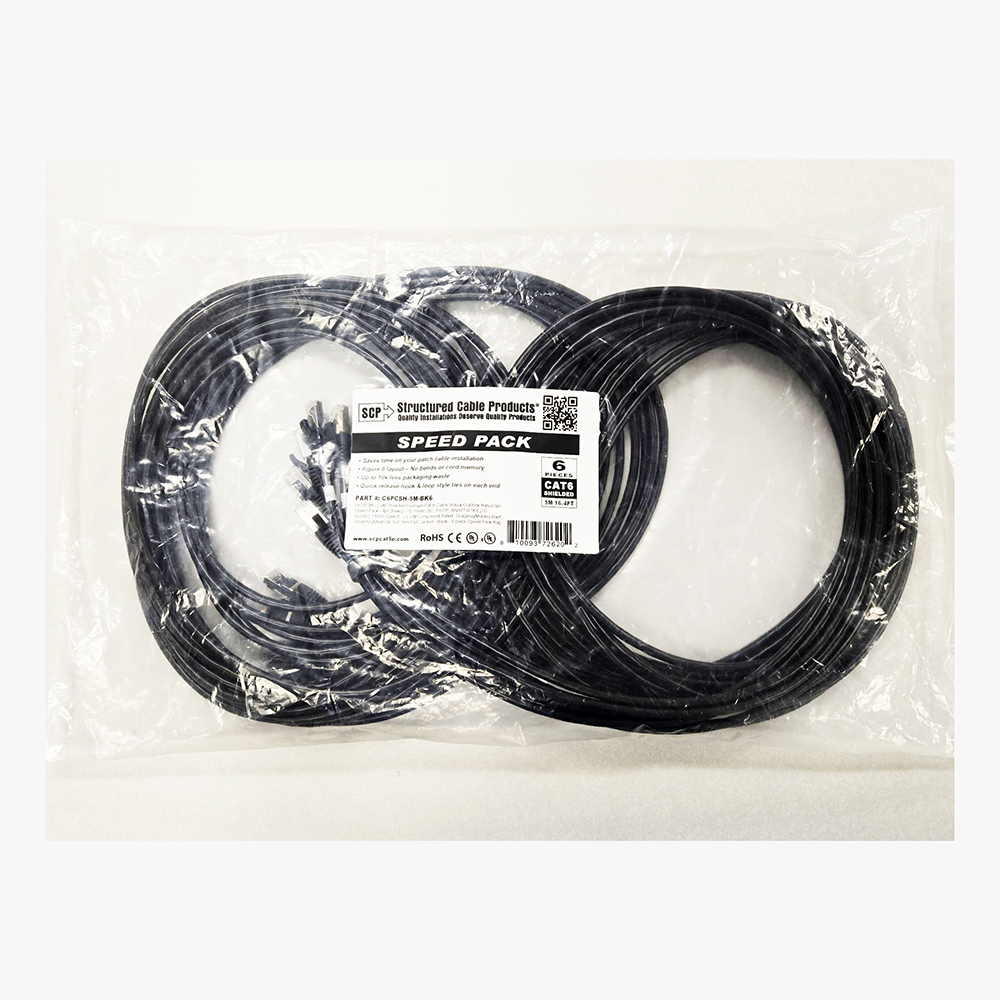 16.5ft/5m Cat6 Shielded F/UTP, Indoor/Outdoor Rated, Black PVC Jkt – 6pc Speed Pack