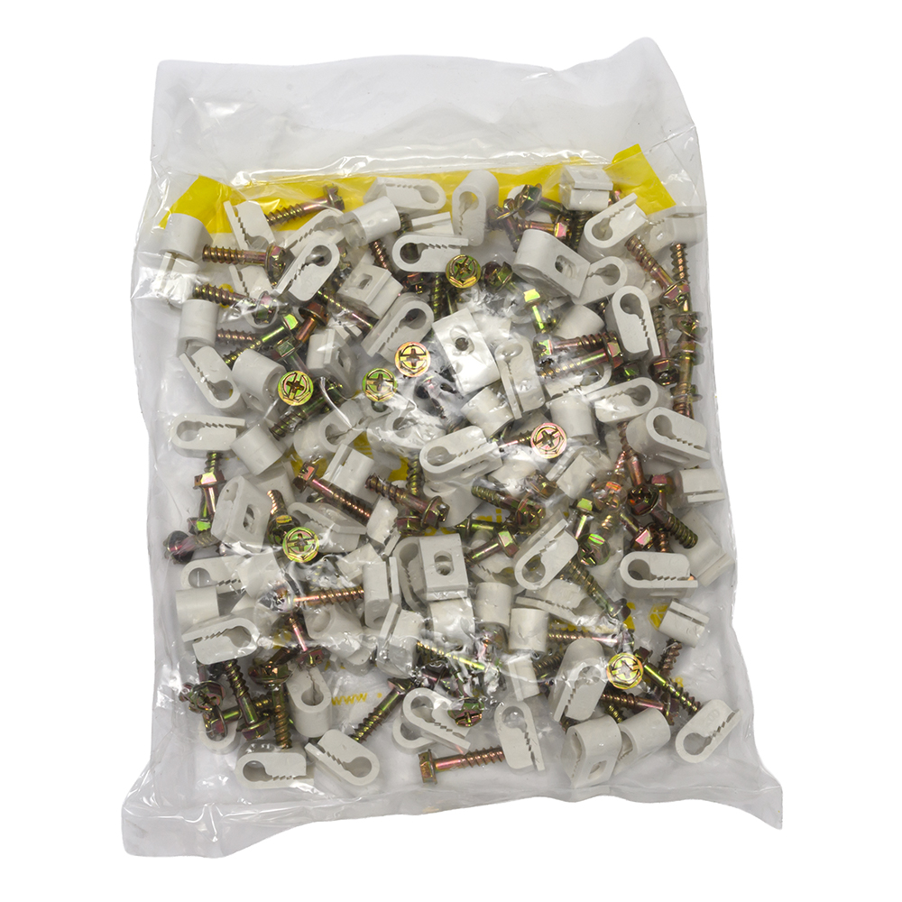 Cat5e Screw Clip – White – 100 pieces per bag. Sold per bag.